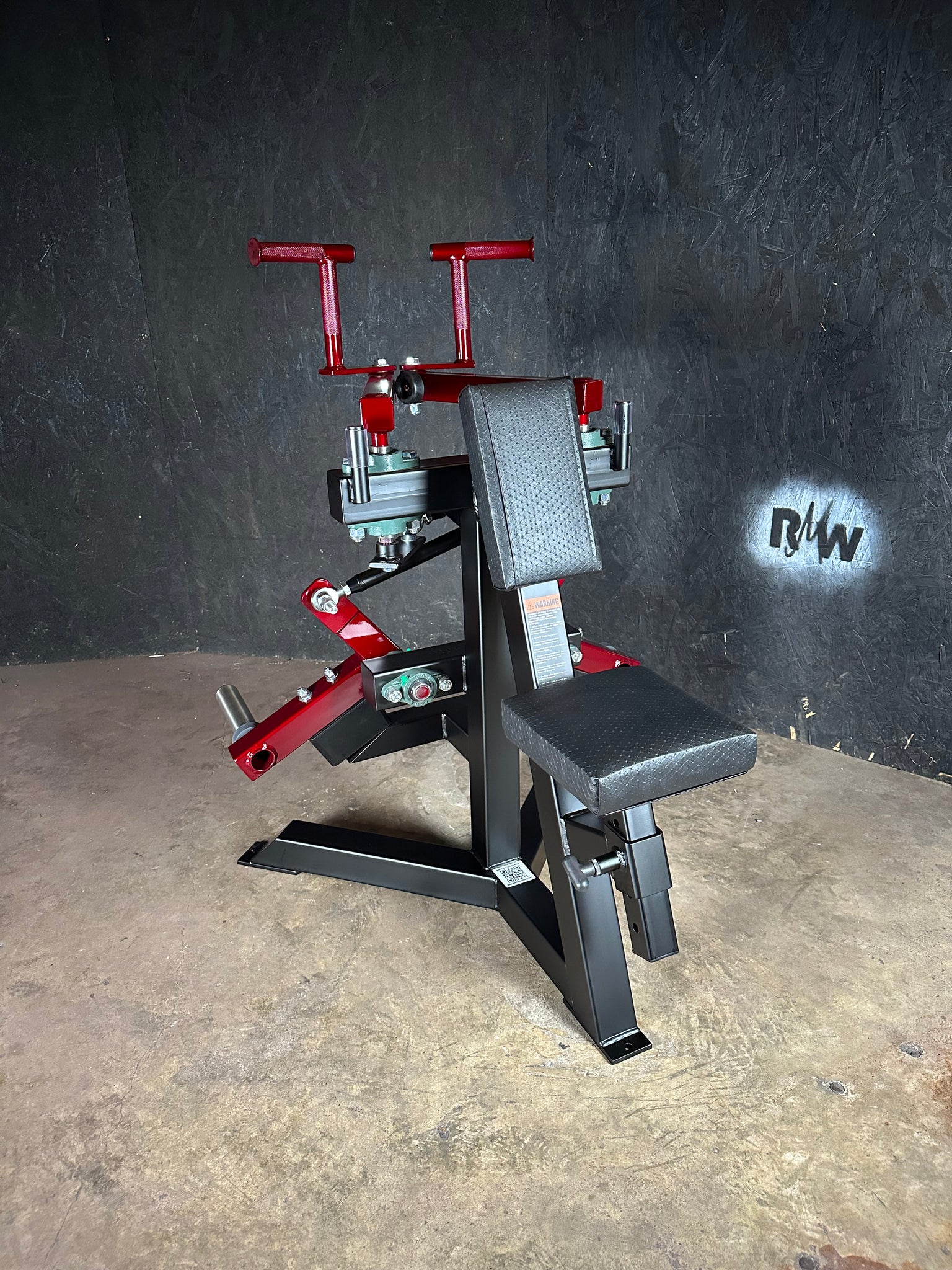 The chest pad angle, weight curve, and movement path are all tailored to isolating and activating only the rear deltoid, and we must say that we nailed it on this one. If you are someone who has trouble activating your rear delts with the traditional exercises, give this machine a try, as its design effortlessly isolates the rear delts. The adjustable seat height, and self adjusting pivoting handles makes the machine perfect for any height/size.